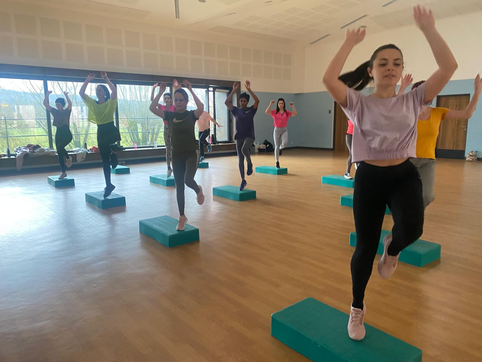 Cours de step dynamique dans la bonne humeur avec des chorégraphies variées et une coach ultra bienveillante.